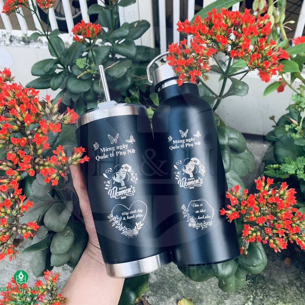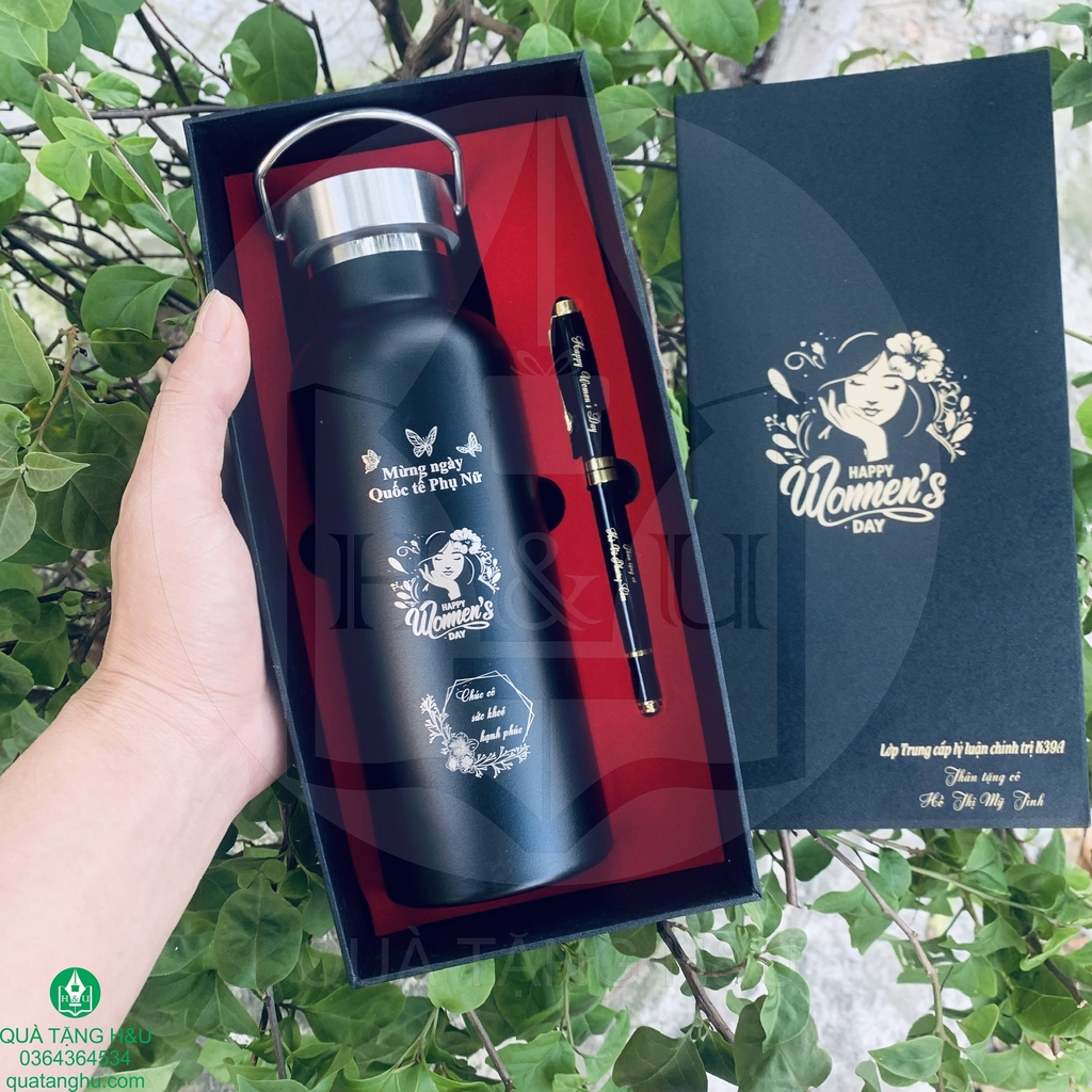 Một bình giữ nhiệt 500ml – 800ml khắc tên hoặc logo là món quà cực kỳ thiết thực. H&U cung cấp nhiều mẫu bình giữ nhiệt inox 304, giữ nóng – lạnh lâu, màu sắc thời thượng, phù hợp tặng nhân viên, khách hàng nữ.